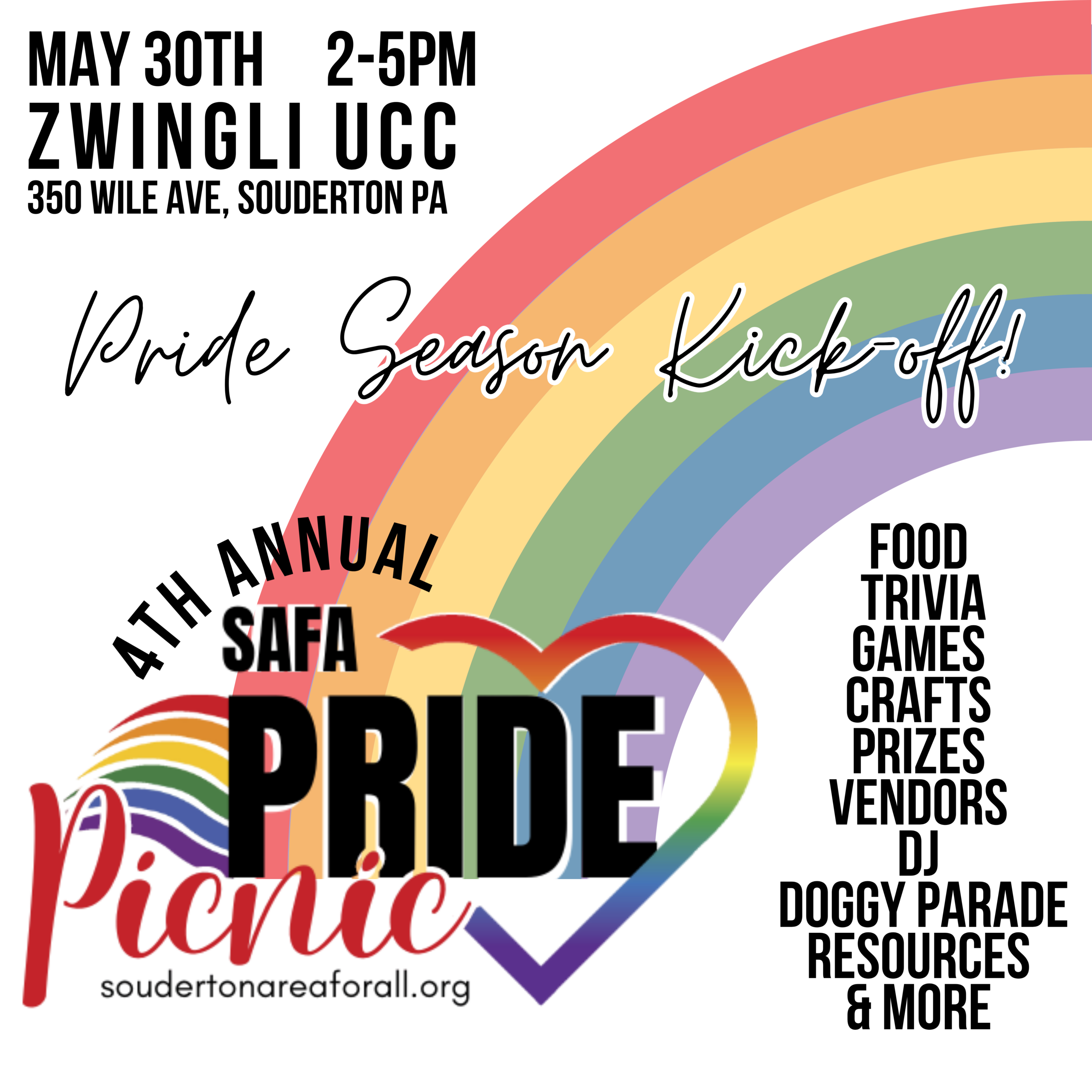 Doggy Pride Parade – To participate, simply bring your leashed pup dressed in some pride swag and we will assemble at 3pm at Booth 38 (The Souderton Area for all Info Booth) and parade around the event! There will be prizes for the pups with the most impressive swag!